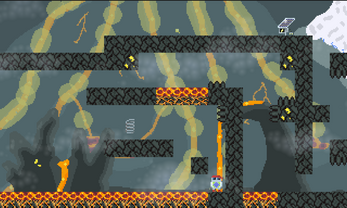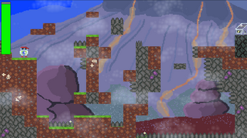 Move with the arrow keys and jump with the up key. Navigate 7 stages and reach the recharge station before you run out of battery least you end up rusting and forgotten in the endless landscape of the mountain...
